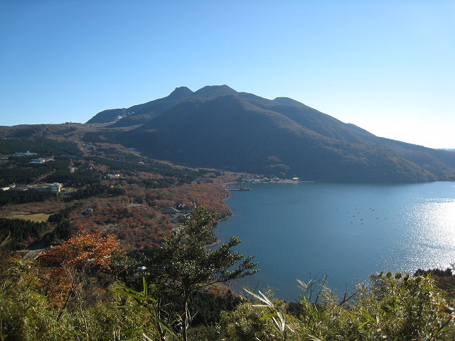箱根の中央にそびえる神山と駒ケ岳が朝日を浴びて神々しかったです。