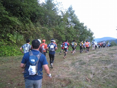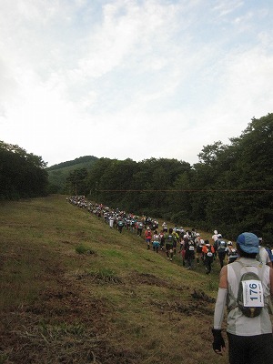 ゲレンデの急登に連なるランナーの列。ほとんどのランナーは走りません。