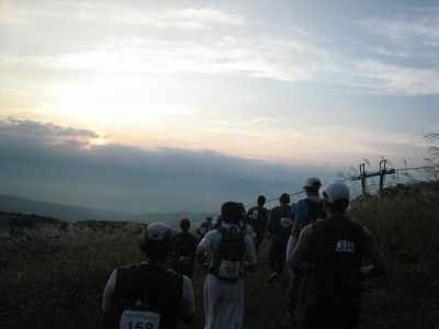 朝焼けの中、はるか110km彼方のゴールを目指します