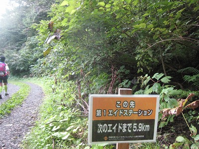 そうこうするうちに最初のエイド(1A 18.5km地点)が見えてきました