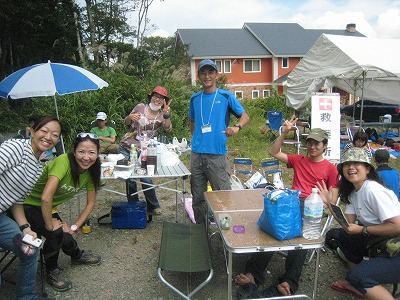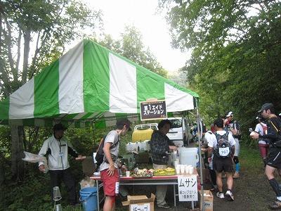 ランナーのオアシス、エイドステーション。全部で8か所あります。水や食料を補給し斑尾山のきつい登りに備えます。