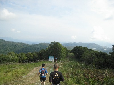 後ろは妙高の山々。手前のきつい登りを克服してほっとしたところです。