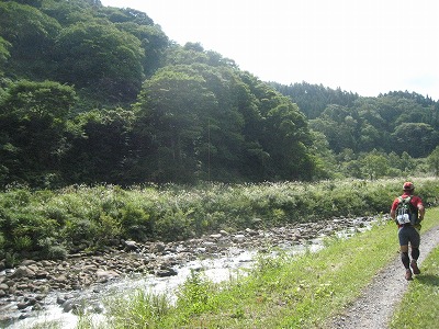 3Aから8km続く赤川沿いの上り砂利道。ここで消耗したランナーも多かったのでは。