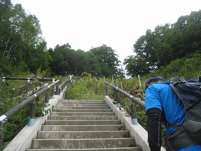 いきなりの急階段。私ゼーゼー。Pカズさんはスタスタ・・・