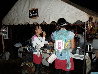 6A(81.0km地点)。もうすでにとっぷりと日が暮れてます。笹寿司とコンソメスープとまんじゅうが美味でした。写真が少なくなってきたのは余裕がなくなってきた証拠、です。