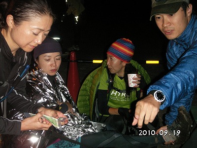 みっちゃん&タッキーも合流!ランナーもペーサーもここでテンションを上げて夜のトレイルに挑みます。