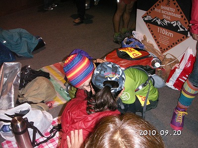 5A(66.1km地点)に無事到着。ここからゴールまでの44kmはペーサー(随伴者)と一緒に走れます。その名の通りペースを作ってもらったり、荷物を持ってもらったり。夜間走行も近いので心強い限り!