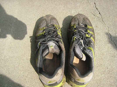 110kmを走り切った3代目MM(マウンテンマゾヒスト)。まだ3回しか履いてないのにヨレヨレ・・・
