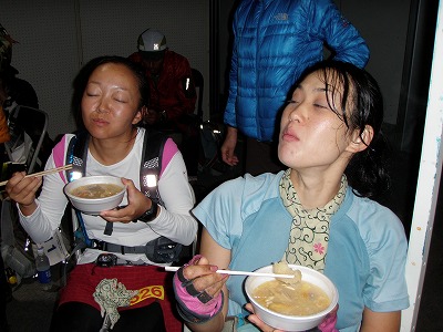 極上トレイルを走り抜けて、やっと4A(51.5km地点)に到着。昨年同様うどんを作ってもらいました。ここですでにスタートから7時間が経過していました。
